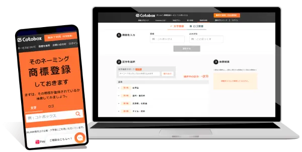 該当可能性のある区分をCotoboxのサポートチームがお調べします。まずは画面右下のチャットよりお問い合わせください。また、申込後にCotobox提携の専門家へ相談しながら出願を進められますのでご安心ください。