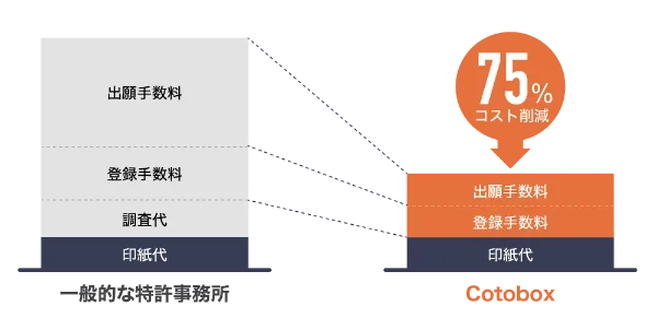 従来の出願方法と比較すると75%のコスト削減を実現しました。