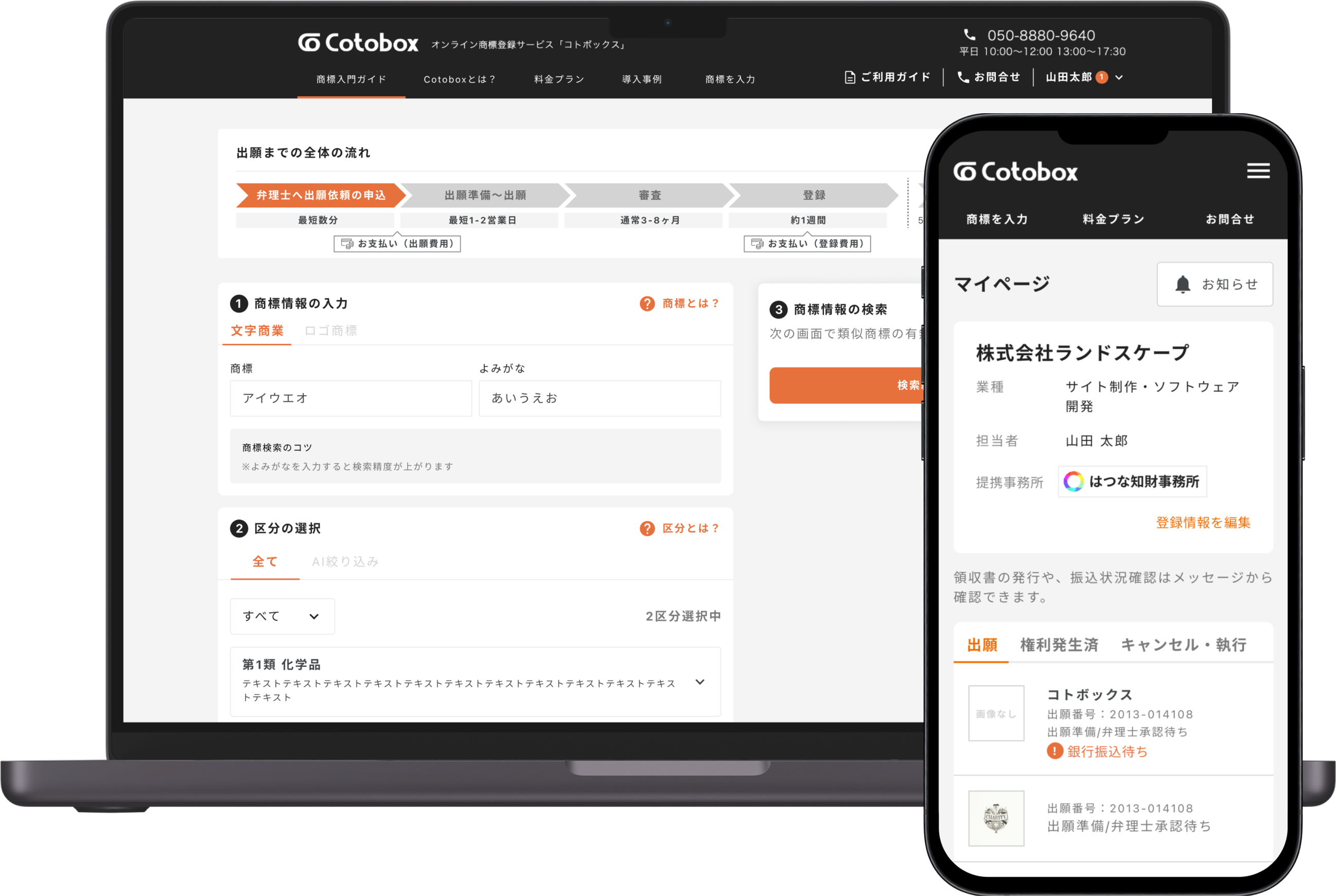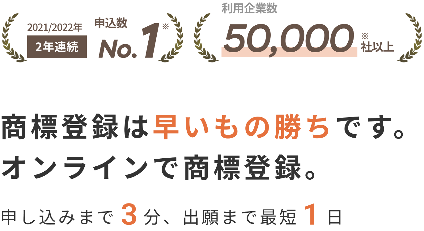 相談件数40,000件以上。オンライン商標登録のノウハウがあり、商標申請後の流れなども共有するので安心。