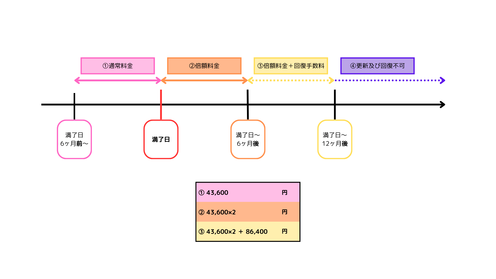 期限日を超えてしまった場合は、通常よりも倍額の更新料がかかります。