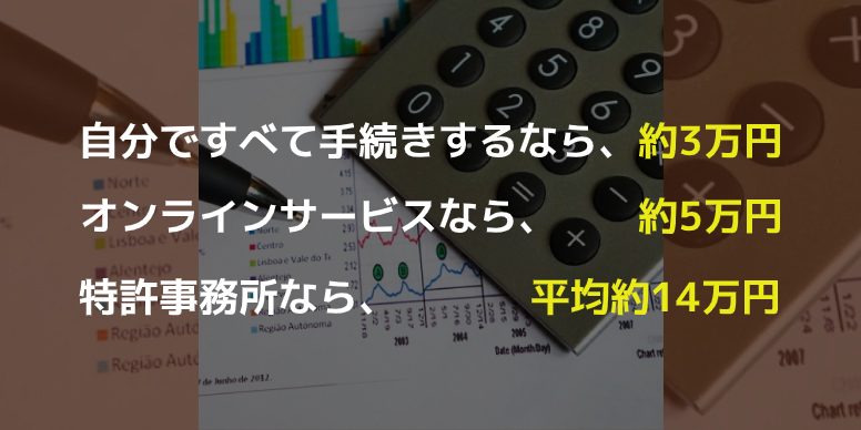 特許事務所(弁理士)に依頼した場合、平均で、約14万円がかかります。